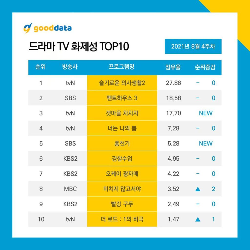 Here are the Weekly Top 10 Most Buzzworthy Korean Drama & Actor Rankings on 4th Week of August 2021 Provided by Good Data Corporation