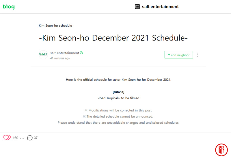 Therefore, just as we previously reported, Kim Seon Ho will possibly be making his FIRST official public appearance for “Sad Tropics” 1st script reading. And for your information, the schedule for “Sad Tropics” script reading was moved to December 4.