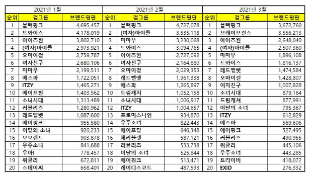 For the analysis, the Korea Institute of Corporate Reputation has collected 30,836,297 big data of the K-pop girl group from February 14 to March 14, 2021. Moreover, compared to the 38,382,504 brand big data in February, it decreased by 19.66%.
