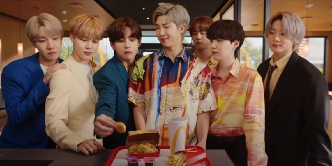 The BTS Meal includes 10-piece Chicken McNuggets, medium fries, a medium Coke, and two new dipping sauces: Sweet Chili and Cajun. Both of the unique sauces are inspired by popular recipes from where the septet is from, South Korea.