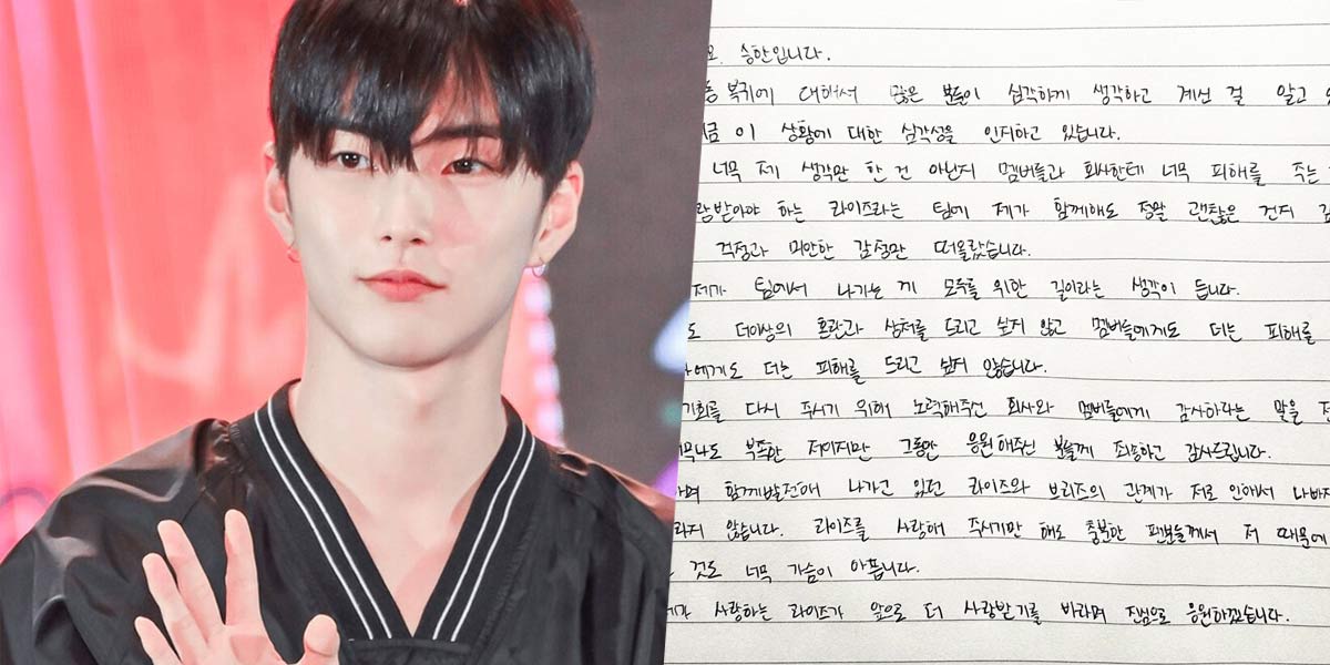 Eventually, Seunghan posted a handwritten letter explaining his decision to leave RIIZE.