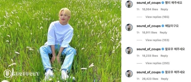 Meanwhile, Choi Seung Cheol (S.Coups) hilariously bombarded the comment section asking Jeonghan to follow him back. Although S.Coups is still having a break due to his right shoulder injury, it doesn’t stop him to bother his teammates.
