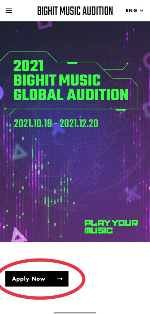 First, visit the official website for Big Hit Music global audition, and click “Apply”.