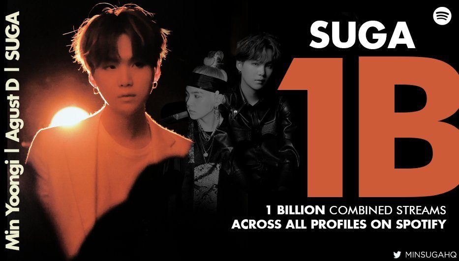 Yoongi surpassed 1 billion streams across his discography on Spotify, becoming the first Korean soloist to achieve that! ? @BTS_twt pic.twitter.com/QMLfNzR7LD