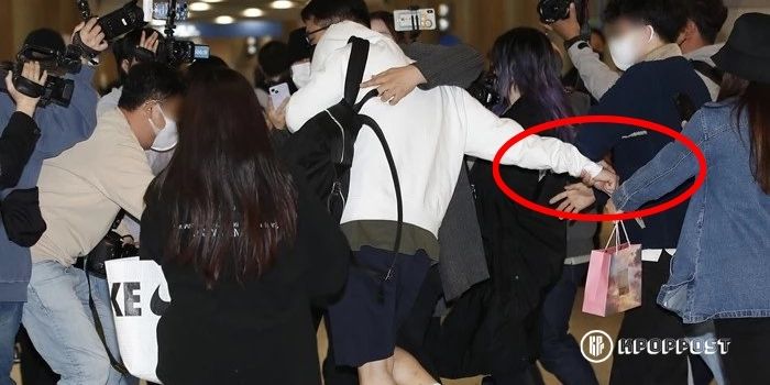 He left the airport with the help of staff to get rid of the reporters (or fans) who tried to get too close to him. Kim Seon Ho seemed uncomfortable surrounded by reporters (or fans) with cameras right in front of his face.