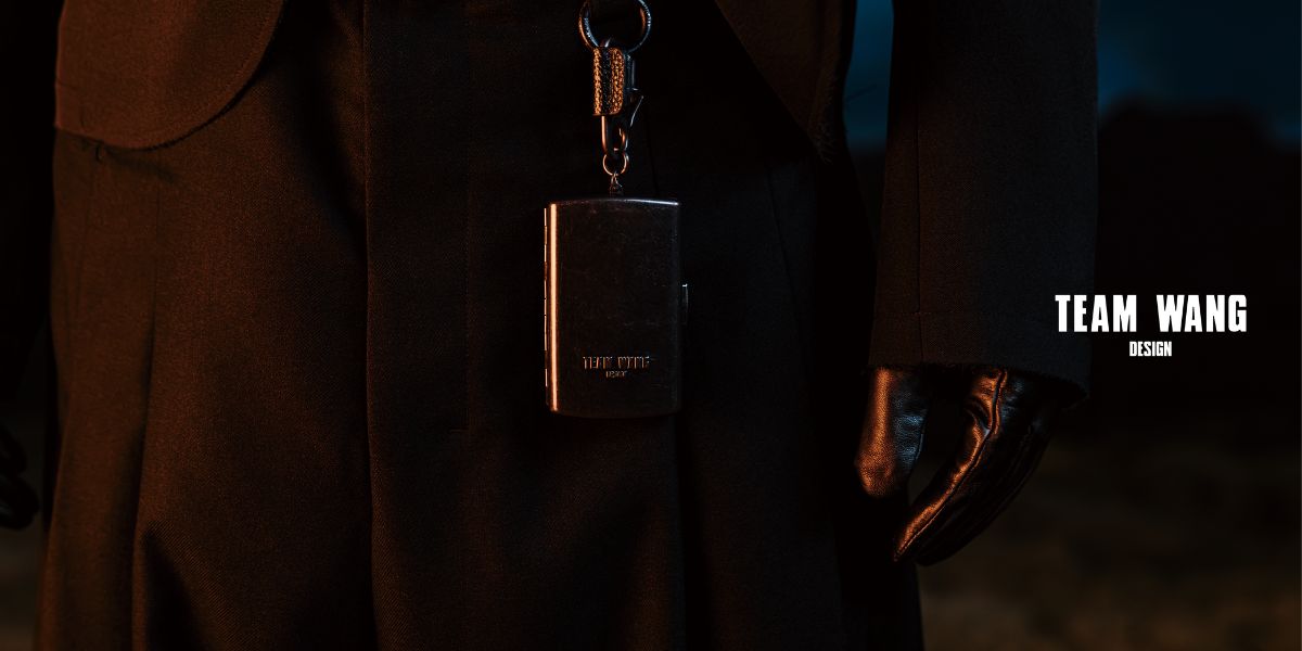 Each piece features subtle detailing — from mottled hardware and metal plaques engraved with “TEAM WANG DESIGN,” to distressed raw edges that add texture and authenticity. The result is a collection that moves seamlessly between tailored refinement and modern edge.