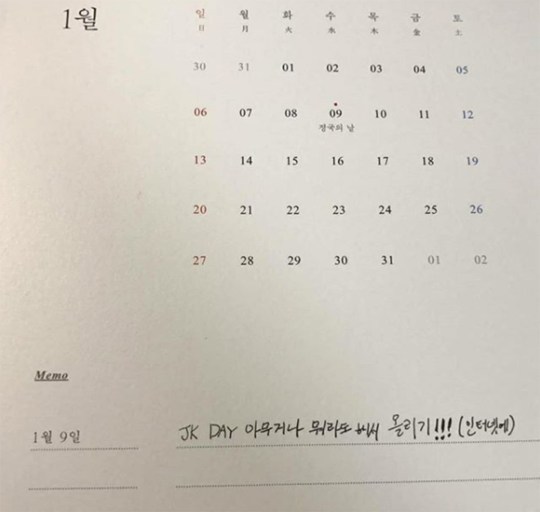 Until now, there is still no specific reason for making January 9 as JK Day. However, all of this is based on a memo made in BTS Season Greetings Package 2018.