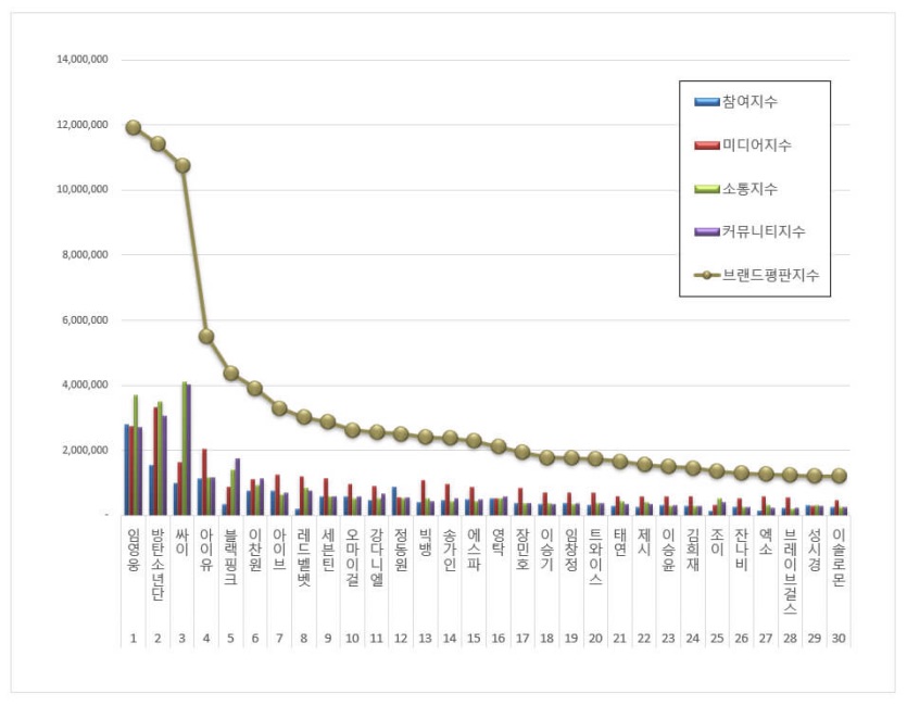 Lim Young Woong is crowned as the No.1 most popular singer in Korean singer brand reputation rankings this month. The singer topped the list with a brand reputation score of 11,925,044. Further, BTS dropped to No. 2 on the list with a brand reputation index of 11,418,407, followed by PSY at No. 3.