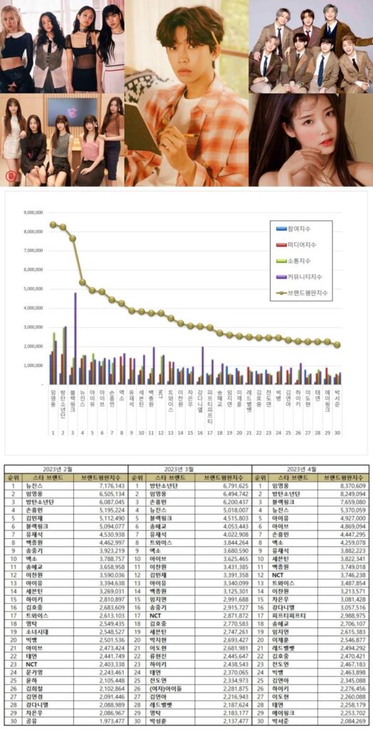 For April’s most popular Korean stars, the Korean Business Research Institute has analyzed 202,980,84 star brand big data from March 30 to April 30, 2023. Compared to 202,942,304 star brand big data in March, it increased by 0.02 percent.