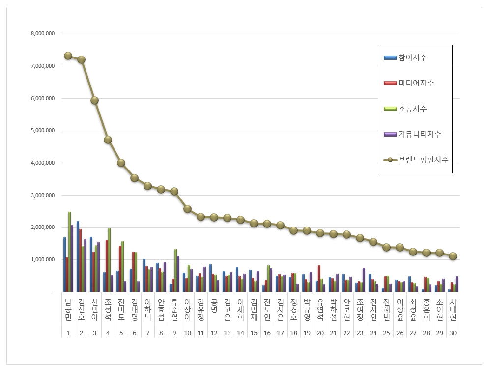 The rankings were determined by analyzing the data through consumer behavior analysis to calculate drama actors’ brand participation, media, communication, and community indexes.