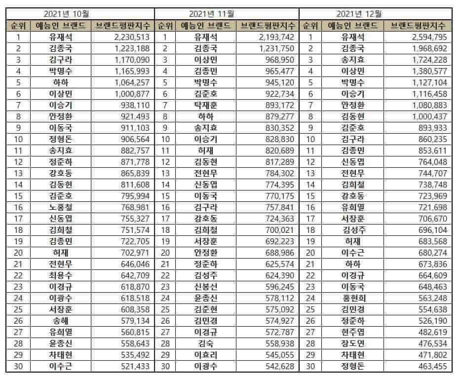 Check out the 30 popular variety star brand-reputations rankings from October to December 2021.
