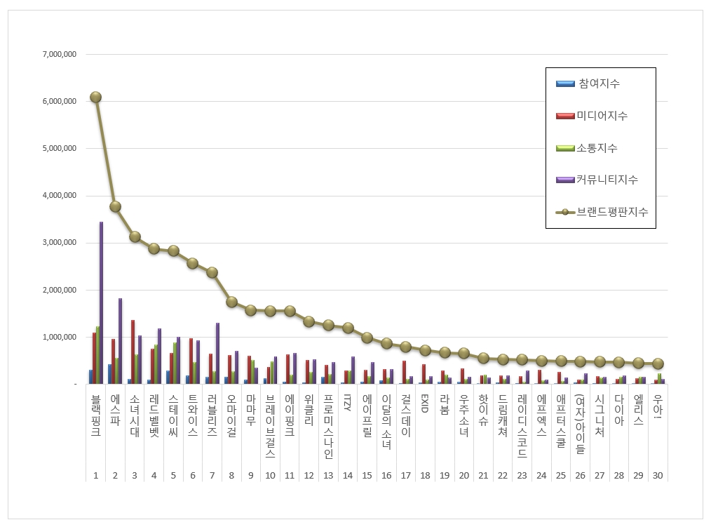 The rankings were established by analyzing the data through consumer behavior analysis to calculate female group brands’ participation, media, communication, and community indexes.