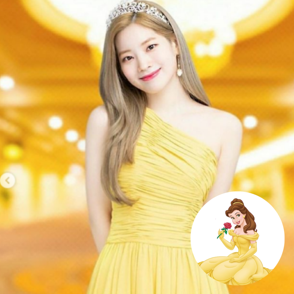 Confident, intelligent, passionate, and kind-hearted, those are similarities between Dahyun and Princess Belle (Beauty and the Beast). Dahyun in dress really looks like Belle.