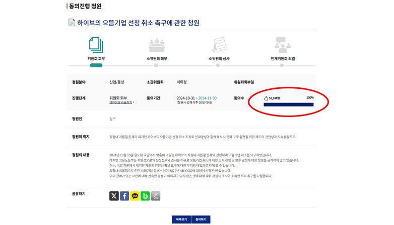 Since the fact that such a well-known journalist could possibly write a subjective and biased opinion in a formal report, the public had been furious, resulting in a national petition to remove HYBE’s status as one of South Korea’ “Top Enterprise.” This petition has gained over 51 thousand formal signatures from South Korean citizens, reaching 100% of the required quotas.
